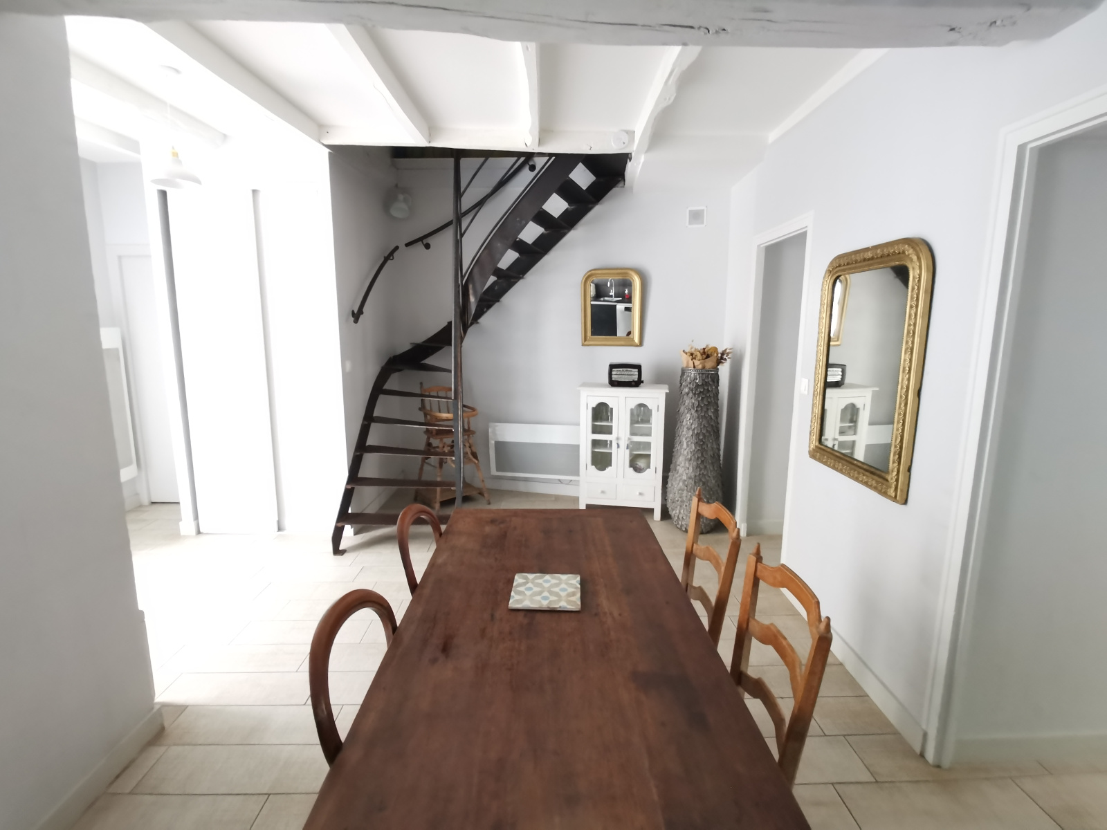 Elle se compose au rez-de-chaussée d’une entrée ouvrant sur un séjour avec cuisine équipée ouverte, d’un salon donnant directement sur la cour, ainsi que d’un WC indépendant.